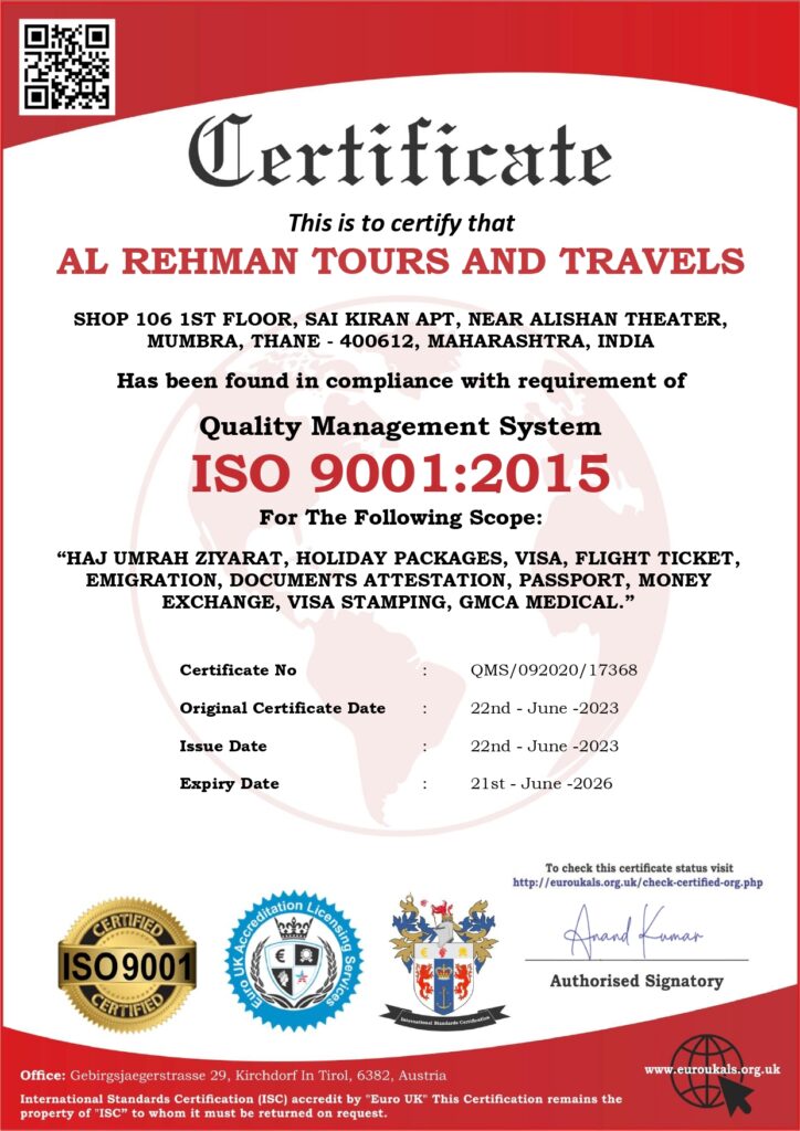 Al Rehman Tours and Travels, your trusted partner in creating remarkable travel experiences. We understand that travel is not merely about reaching a destination; it’s about the journey itself. Additionally, our trademark registration further solidifies our position as a recognized and reliable brand within the travel and tourism sector.